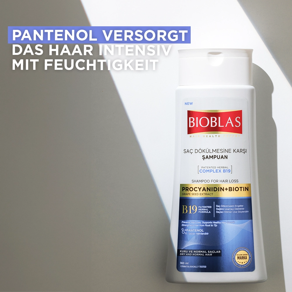 Das patentierte Herbal Complex B19 ist klinisch getestet, wirkt nachweislich gegen Haarausfall, nährt das Haar und unterstützt ein pH-gerechtes Gleichgewicht der Kopfhaut.