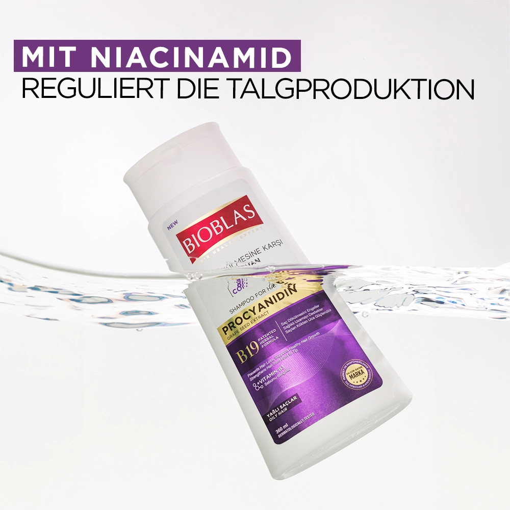 Wirksam gegen Haarausfall: Die mit Herbal Serum angereicherte Formel pflegt das Haar intensiv und hilft, Haarausfall vorzubeugen. Procyanidin, ein starker Antioxidant aus Traubenkernen, schützt Haar und Kopfhaut und unterstützt Stärke und Gesundheit. Die spezielle Formel mit Niacinamid reguliert die Talgproduktion der Kopfhaut und beugt übermäßiger Fettigkeit vor.