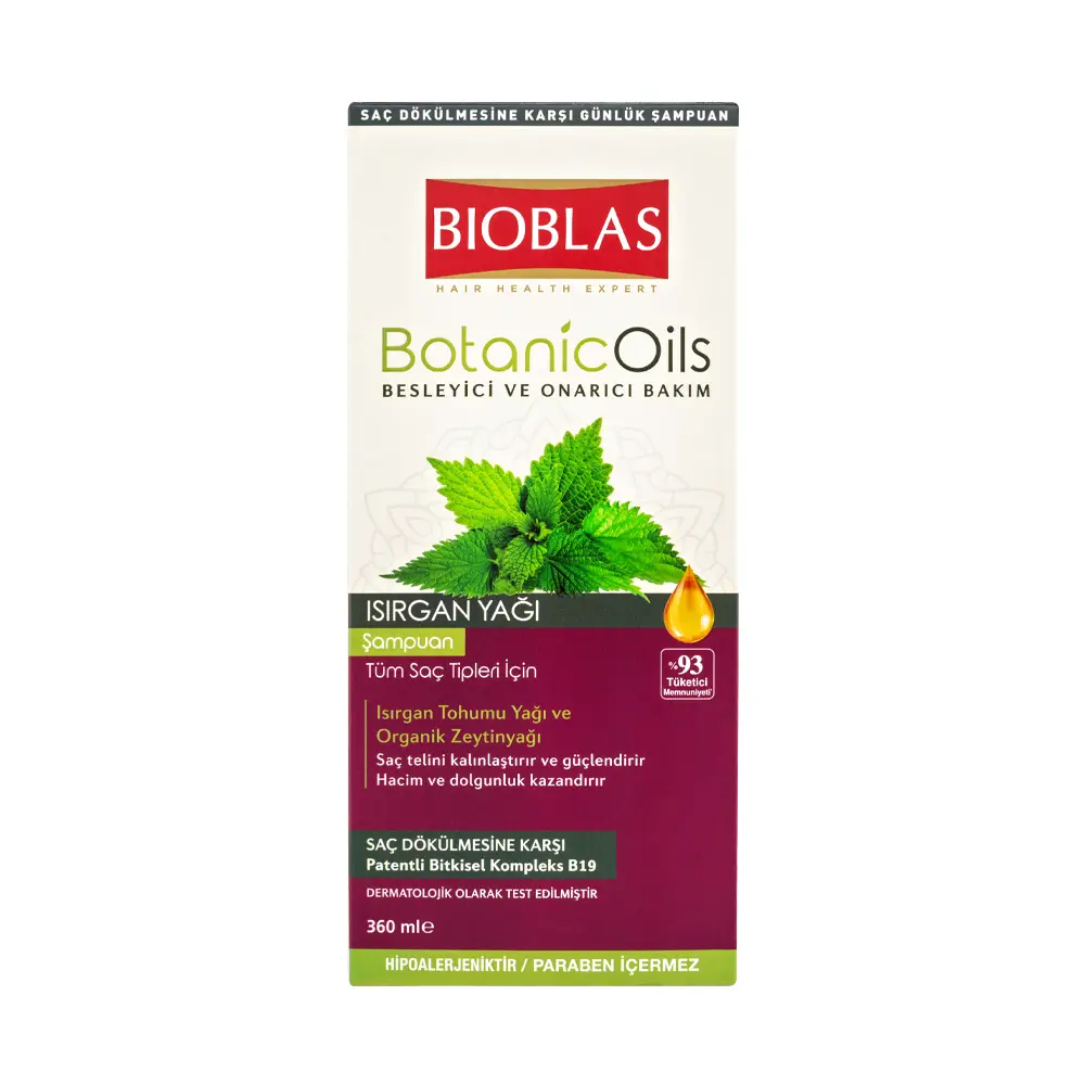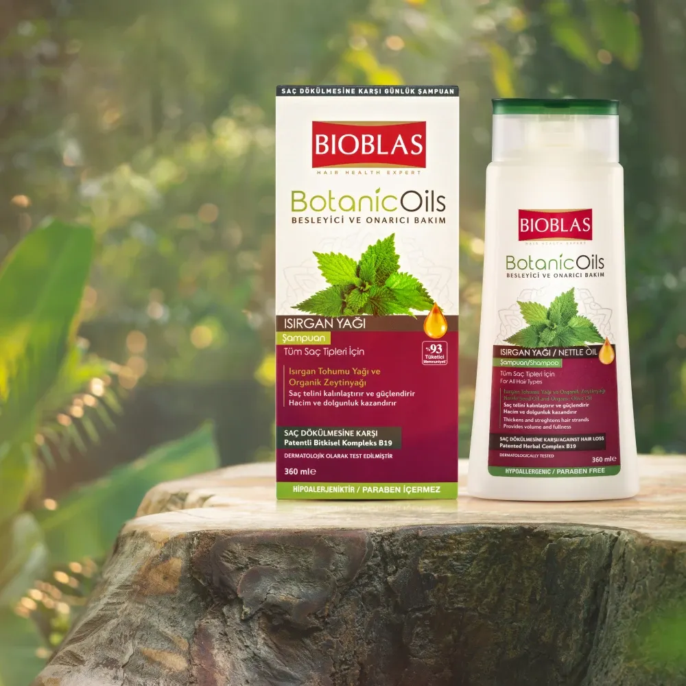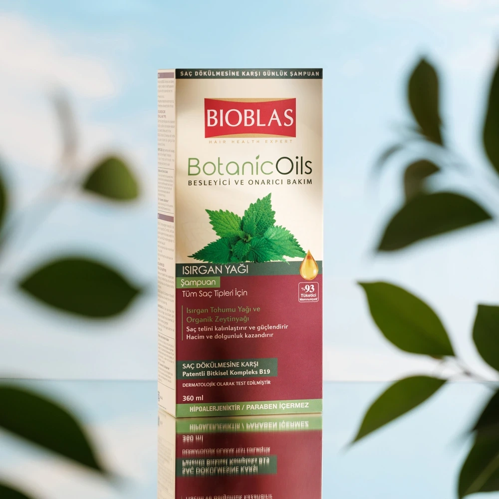 Bioblas Botanic Oils Shampoo mit Brennnesselsamenöl und Bio-Olivenöl verdichtet das Haar und schenkt langanhaltendes Volumen und Fülle.