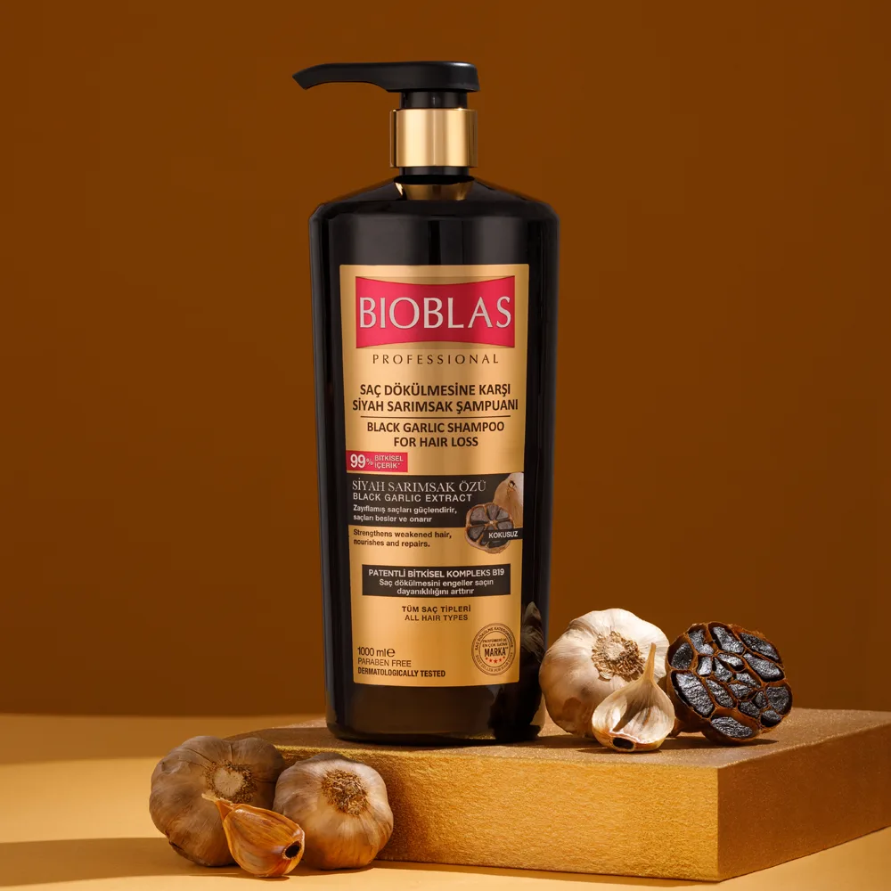 Schwarzer Knoblauch-Extrakt reguliert die Talg-Balance, repariert geschädigtes Haar und verleiht natürlichen Glanz und Vitalität. Reich an Schwefel, Vitaminen und Aminosäuren, stärkt es das Haar, macht es widerstandsfähiger und sorgt für volle, gesunde Haare.
